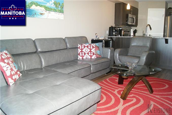 1R//Winnipeg/Gorgeous newer condo in Bridgwater Forest. This one bedroom condo is move in ready with modern finishes and laminate flooring throughout. Open concept kitchen has dark cabinets, tile backsplash, corner pantry, stainless steel appliances and a HUGE island perfect for barstool seating. In-suite laundry and storage. TWO parking stalls. Condo features fitness room and casual room with a pool table. Low condo fees include heat and water AND hydro. Awesome balcony for BBQas and entertaining. Conveniently located by walking trails, shopping, transportation, and the university of Manitoba. Book your private showing today.