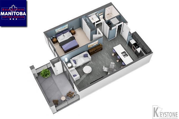 1M//Winnipeg/The ' Naples'. Beautiful 'Naples' on the third floor. This floor features 9 foot ceilings. Have your coffee on the oversized east facing balcony, with an 8 foot patio door. Insuite laundry, outdoor parking and a storage locker all included in the price. Be in love of the luxurious finishes of thermo foil wrapped cabinets, quartz counter tops in both the kitchen and bathroom. Subway tile for the kitchen back splash, laminate, vinyl and rug flooring. This is a 4 storey building and ample guest parking. The amenities in the building is 2 elevators, party room, fitness center and outdoor patio area.