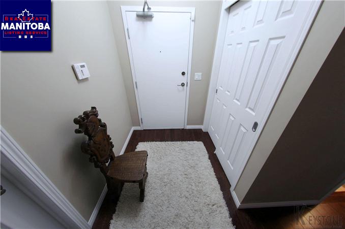 1M//Winnipeg/Showings Start Wednesday May 17 Offers Wednesday May 24 in the Early Evening. Lovely end unit on the top floor facing South with an enclosed balcony. Original owner that had many upgrades included, specifically cappuccino hardwood flooring throughout with the exception of the bedrooms, oak cappuccino cabinets in kitchen and baths, over sized island, granite counters including the desk, stainless steel appliances, built in microwave, ceramic tile back splash, under counter lighting, custom built oak cappuccino entertainment unit with electric fireplace in the living room, 3 piece ensuite with walk in closet in master bedroom. The condo is filled with natural light and has a very open floor plan. Unit includes one underground heated parking space, ample visitor parking and a guest suite available for rental. Common area includes, library, fireside lounge, billiard room exercise room and a fully equipped entertainment room. Enjoy the pride of ownership without the burden of landscaping and snow removal.