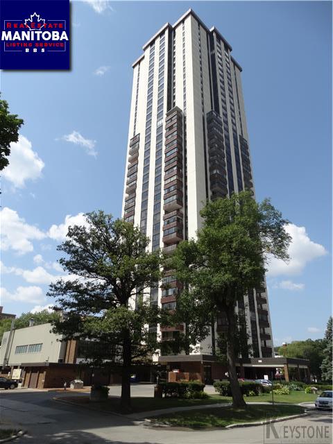 Winnipeg/One of the areas most desirable buildings. Enjoy the South East views from this 2 bedrooms 1010 sq ft condo. Relax on the enclosed balcony and enjoy the view of the city. Plenty of space as you enter the open floor plan with eat in kitchen. Looking to restore the beautiful wood parquet floors They have been protected with carpet and should be amazing shape.