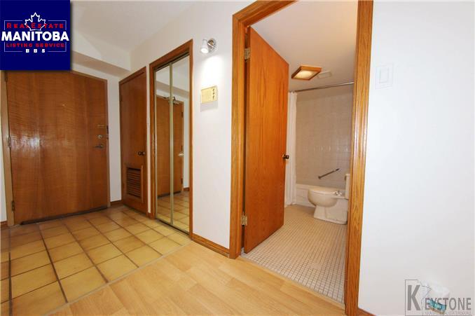 Winnipeg/Come home to this spacious south facing 1 Bedroom Condo with so much to offer.It is a well maintained building with security entrances and live in caretaker. Easy to care for Laminate flooring in dining and living room.Kitchen has lots of cabinets plus a pantry.In-suite laundry and storage area plus an enclosed balcony.The spacious master bedroom comes with a 3 pc en-suite and walk-in closet. AC and Furnace were replaced about 3 yrs ago. Condo is freshly painted and move in ready.The building offers an on site gym plus a common room for meetings or get togethers.Heated underground parking and lots of visitor parking.Close to shopping, restaurants, and bus routes. Don't miss this one, the lowest priced condo in the building.Book your appointment today.