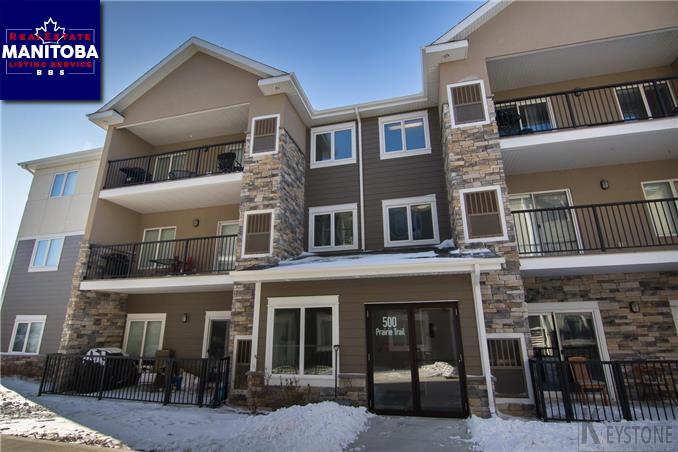 Welcome Home to 500 Prairie Trail, Niverville! This terrific second-floor condo boasts great finishings, lots of space, low condo fees ($143/month) in a great community - all for a low price. Some of the many features include a large kitchen complete with stainless steel appliance, backsplash, plenty of cabinets space, a great island for food preparation and a spacious dining room with patio doors opening to the second-floor 8'x20' balcony. Large windows bring in plenty of natural light to the open concept kitchen, dining and living room. This unit includes main floor laundry w/ storage space 2 generous sized bedrooms and 2 full bathrooms. The condominium features over an acre of green space with pond, park, play structure, walking trails and picnic shelter! Lots of value - call today to book your private showing!