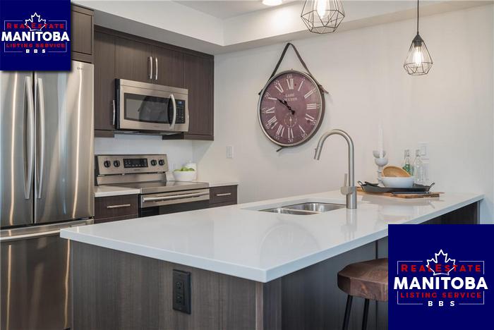 The 'Discovery' Floorplan. WHY RENT WHEN YOU CAN OWN WITH INTEREST FREE HELP FROM CMHC Brand new with a warranty. Kitchen offers dark thermafoil cabinets, white quartz counters, double undermount sink/upgraded faucet, tiled backsplash, under cabinet lighting and SS kitchen appliances. Luxury vinyl plank floors have been added throughout the living space and bedrooms are carpeted. Soundproofing is built beyond MB building code and offers STC ratings of 57. All suites come with state of the art wall mounted A/C units to keep cool this summer. These suites are all pet friendly. Large amenity rooms include a party room (rentable to host a private party) and a convenient gym! Live in established Transcona close to shopping, golf, schools, parks and dining and so much more! We would be happy to take you on a private appointment. The photos depicted are the display suite and have variations in colors.