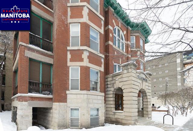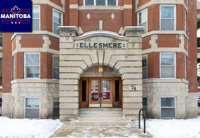 The Ellesmere, vintage turn of the century charm, where the heart of the city beats. Centrally located minutes from the river trails, the Forks, Osborne Village, the Exchange District, South Sherbrook, x-town transit shopping, parks An ideal place for young urbane professionals, students, artists, or musicians.Substantial 3rd-floor apartment. Best view in the block. Open kitchen features dbl sink, s/s appliances, dishwasher and pendant lighting above the breakfast bar. Ample balcony with antique wrought iron railing off the dining room for morning coffee or afternoon cocktails in the summertime. The living room is dining room adjacent, w/East facing views of the Dalnavert Museum, HWFs throughout the main areas of the unit. The LR and DR combine into one large space, also open to the kitchen. Two windows and a balcony door lead off the north side of the dining room. The 4 pc. bath has a new window, a vanity w/modern bowl style sink, a re-glazed bathtub, ceramic tile floor and lg mirror.Move-in Ready!