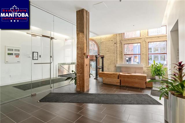 This BEAUTIFUL 1524 sf, 2 bedroom, 2 bath loft style condo is locate in desirable Ashdown Warehouse in the Exchange district. This unit boasts an open floor plan with stylish exposed wood beams, exposed brick, hardwood floors and large bright windows with southern exposure. A modern European island kitchen with stainless steel countertops and appliances. Large dining area and raised living room. Primary suite features a deluxe walk-in closet and ensuite with glass and tiled shower, his/her vanity. A 2nd bedroom, 4 pc bathroom and in-suite laundry/storage. Heated underground parking and a rooftop patio /lounge area complete this beautiful one of a kind condo. Walking distance to restaurants, coffee shops, boutiques and the Forks Market.