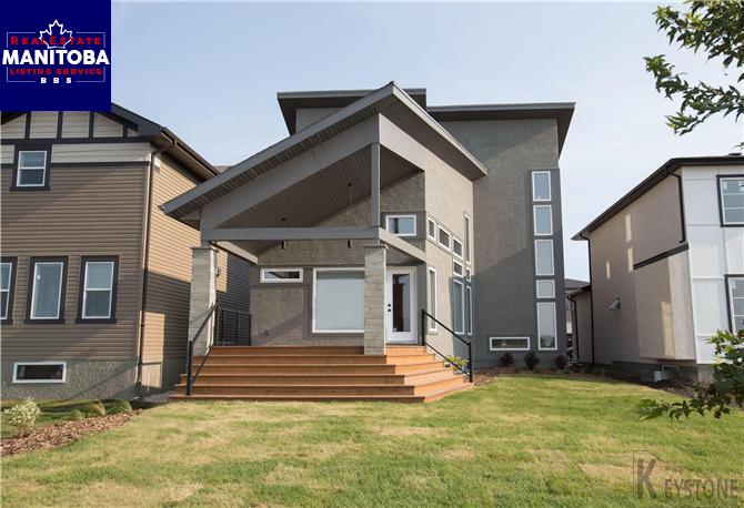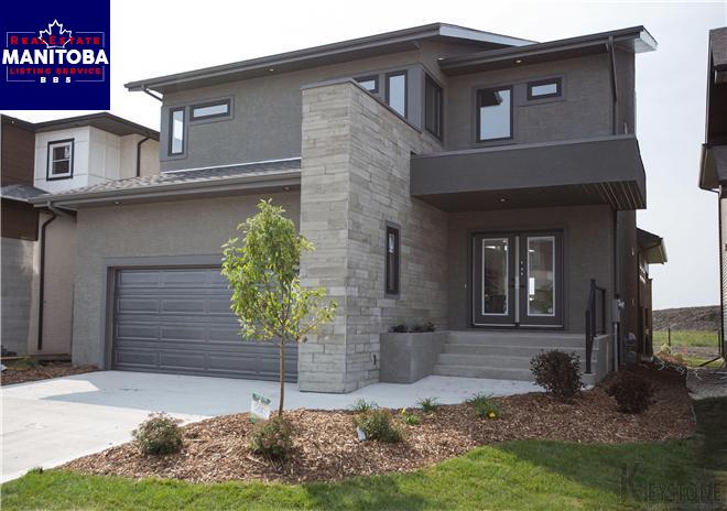 2J//Winnipeg/Gorgeous Gino's Homes 2 storey 1, 868sqft located in Bona Vista. Deluxe Ensuite bath with dual vanitysinks with quartz counters, ceramic tile shower, glass railings, modern kitchen with upgraded softclosing cabinets with island and Quartz counters, glass kitchen backsplash, covered deck with pendantlights, lots of windows with plenty of natural light, Central Air, front elevation combination ofsmooth/textured stucco, glass rail and stone, Built on Piles and many more features.