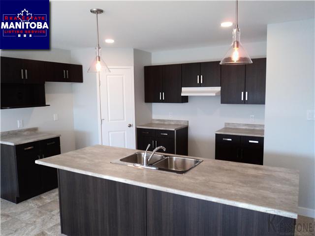 R16//Steinbach/Welcoming covered porch welcome you to this 1113 sf home. Rich espresso kitchen with working island and walk in pantry. Garden door from family room opening onto back deck overlooking landscaped yard backing onto greenspace. Trayed ceiling in open concept living room ideal for entertaining. Main floor laundry hookup in 4pce bathroom. Master suite with well placed windows and accent lighting . Full basement offers extra space to develop for your family needs. Attached garageand concrete driveway, deck and sod included.