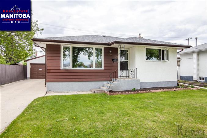 5E//Winnipeg/Offers June 5th at 5pm. Open House Sunday, June 4th 2:30-4:00 P.M. Showings By appointment Only! Start Here! In Sunny St James. Large living room, wall to wall over oak hardwood flooring, 2 big bedrooms, most PVC Windows and doors 2009. 4 piece bath, Oak kitchen cabinets fridge and stove, pantry. Rec room, laundry room, washer and dryer, freezer. Forced air furnace, central air conditioning. Hot water tank 2009. Front drive to garage, garage opens to front and back to lane. Convenient location, close to Polo Park, bus and all levels of schools. Call for your appointment today!