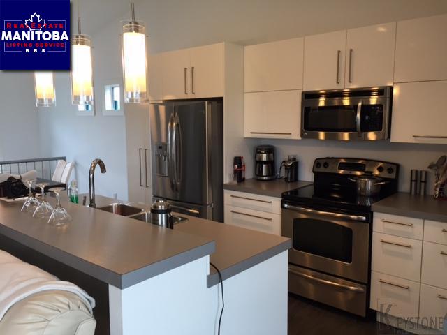 R35//Winkler/Beautiful contemporary 2 bedroom, 1 washroom home featuring a white a??Ultra Glassa?? kitchen with large island, fridge, stove, washer, dryer, dishwasher, central air conditioning, air exchanger and central vacuum included. Basement has the laundry room and one bedroom framed in. Garage is 24a??x 24'.