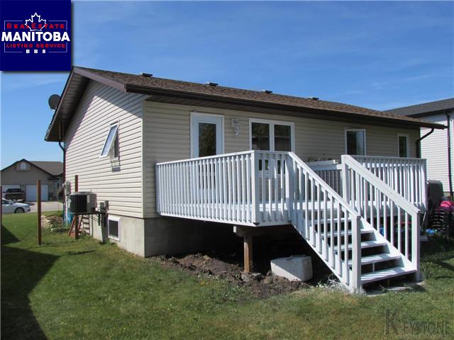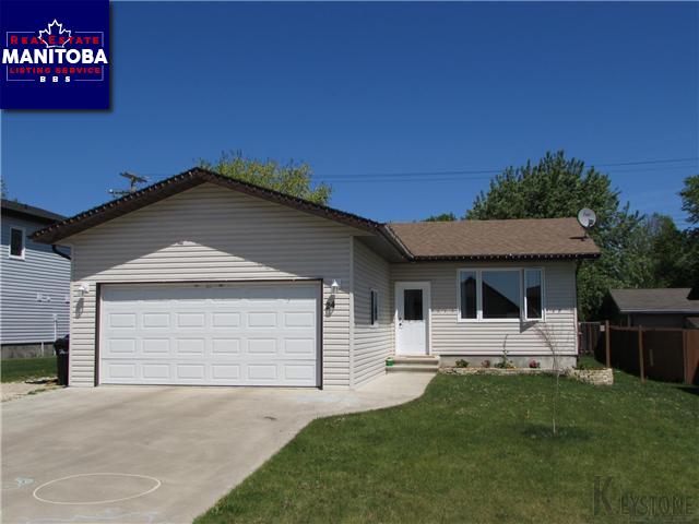 R35//Morden/South facing home built in 2008 on a no-through street - close to school, green space and golf course. 952 sq ft with 2 bdrms and full bath on main. Large entrance area with semi-open concept living area. Kitchen includes corner pantry, dishwasher, fridge and stove with garden door to 12'14' deck. Spacious master bedroom has room for king-size bed and has privacy entrance to bathroom. Basement framed and finished up to drywall stage with 2 bedrooms, recroom, laundry, storage and bathroom with plumbing roughed-in. New hot water tank 2014. C/A. C/V roughed-in. 22'x20 garage with built-in shelving, opener and remote. Yard is partly fenced and has RV parking area at side of drive.