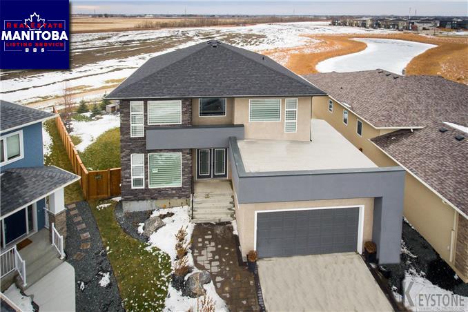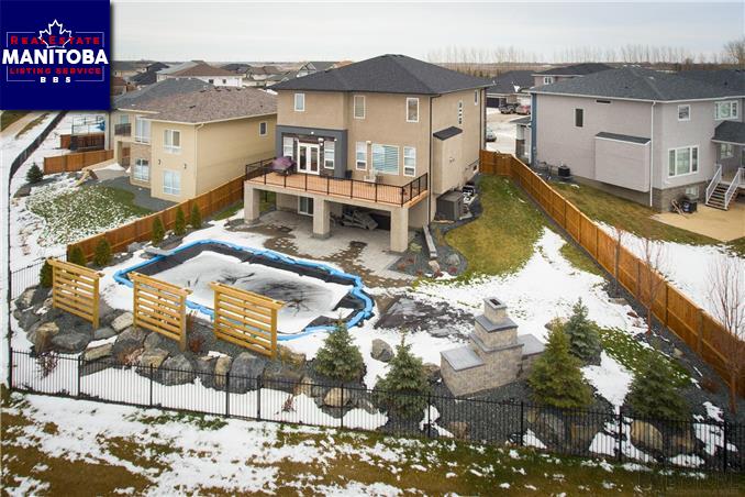 Winnipeg/This impressive 1 year old two-storey walk-out is nestled on a massive pie shaped lake front lot! Enjoy 3800 SqFt of luxurious living space with fully finished walk-out basement, 4 beds, 4 baths, office, home gym and in-ground pool. CLICK VIDEO BUTTON FOR FULL TOUR. The sun drenched south-west facing 34'x12' deck, professionally landscaped yard/patio, stone fire place and huge in-ground pool all feature breathtaking lake views. Over 130k in landscaping. The back yard oasis is perfect for entertaining, relaxing and prairie sunsets. Entire home loaded w/ upgrades. Grand entry, quartz counters, island w/ built-in wine fridge, gas fp, sound system thru out, open concept kitchen/dining/living and top of the line SS apps. Sweeping views from enormous master suite with a 17'x15' spa like ensuite: his/hers sinks, rain fall&steam shower, soaker tub and walk-in closet. The walk-out basement is spectacular w/ 9' ceilings, home gym or theatre, laminate flooring and huge rec room. This one has it all!
