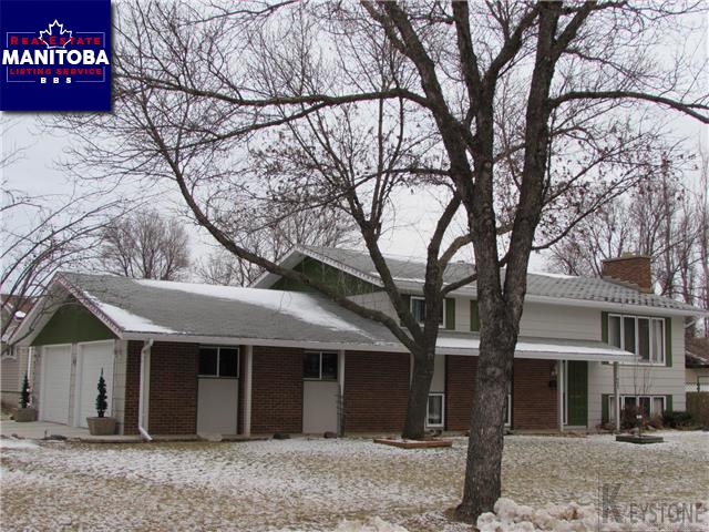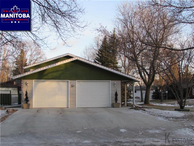 Morden/1092 sq ft 3 +1 bedroom bi-level - walking distance to schools, park and rec centre. Master bedroom with 2 pc ensuite. Eat-in kitchen with pullouts in cabinets and a two-tiered deck off formal dining area. Large family room on lower level with wood burning fireplace. Large 26'x24' insulated and lined garage. Storage shed, fridge, stove, washer, dryer, microwave included. (All window coverings included except curtains in master bedroom). C/A and C/Vac.