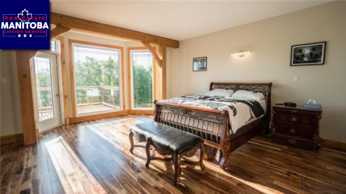 St Adolphe/Custom-built timber frame home w/3, 880 sqft, 5 bdrms, 5.5 baths sitting on 5.21acres on the red river w/32ft floater dock! 7 mins to perimeter hwy. The LR has floor-to-ceiling windows overlooking your beautifully landscaped yard and river. The LR is open to the ktchn and informal dining area. Prep meals in your stunning ktchn w/ travertine stone floors.2tier island and cook-top.built-in oven and microwave. SS appliances. Garden doors lead you from the ktchn and onto an expansive wrap around deck. The master comes w/ walk-in closet, bthrm w/ claw-foot soaker tub and steam and multi-spray shower, balcony overlooking the yard and river! Upstairs you'll find find a loft-den. guest bdrm w/ walk-in closet and spa ensuite. Jack and Jill bdrms w/ spacious shared bath. Dwnstrs is a lrg rec. room. bdrm. playroom cold storage.2 bthrms. Equipped w/ geothermal system - heats and cools w/ forced air circulation offering $1600/yr energy costs! Dble-attached insulated garage and multiple detached Quonset(20x40). swimming pond. Schools closeby in St.Adolph