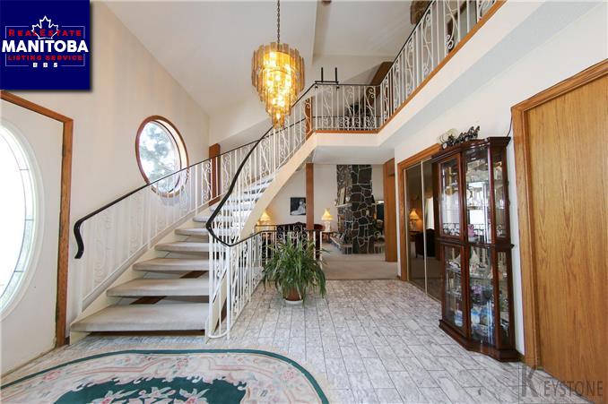2 Acres well located just minutes from the perimeter and 6 minutes to St. Vital shopping mall. The originals owners of this 2800 sq. ft. 2 storey 3 + bedrooms, 4 bathrooms, have kept this home well maintained. Drive up through the private tree lined driveway up to the circular front drive, to this stunning custom built home. As you enter into the large marble titled foyer you will see the amazing spiral staircase, bright and open family rooms, formal dinning room with french doors, HUGE eat-in kitchen made for a chef with granite counters. Upstairs you will find 2 great size bedrooms with a full bathroom. The master bedroom is fit for a king and queen, large 2 person jetted tub and private balcony perfect for morning coffees. Downstairs you will find loads of space for your growing family with another full bathroom. Outside you have a beautiful deck and patio area, 2 sheds, garden area and much more! Don't miss this gem for you and your family!