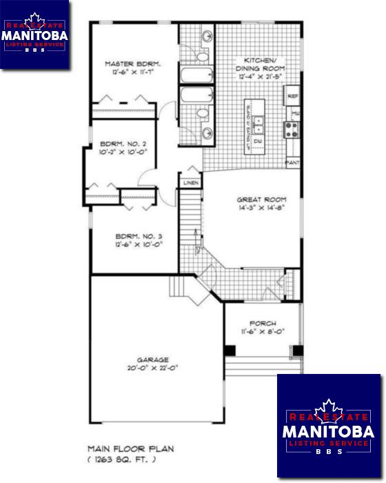 LOT PRICE $ 131, 341- BROADVIEW HOMES- THE WESTON - 1263 sq.ft. - 3 BEDROOMS - LARGE PIE SHAPED LOT - COVERED FRONT PORCH ENTRANCE - LARGE GALLEY STYLE KITCHEN WITH ISLAND c/w EATING LIP - SPACIOUS GREAT ROOM AT FRONT OF HOME - 9'-0' MAIN FLOOR CEILING HEIGHT - 22'-0' X 22'-0' ATTACHED GARAGE - CONCRETE DRIVE - CONCRETE WALK - PILED FOUNDATION - MASTER BEDROOM ENSUITE FEATURES UPGRADED 5'-0' SHOWER- 3 POT LIGHTS IN KITCHEN- 4 POT LIGHTS IN GREAT ROOM - 2 PENDANT LIGHTS ABOVE KITCHEN ISLAND - 9'-0' THREE PANEL WIDE PATIO DOOR off DINING / EATING AREA - UPGRADED FRONT DOORS TO FULL GLASS - 2 X 24' X 60' WINDOWS TO GREAT ROOM SIDEWALL - PAINTED CEILINGS -SOHO CABINETS 40.5' UPPERS - SAHALE STAINLESS STEEL HOOD FAN - UPGRADED CARPET- VINYL PLANK FLOORING - LOCATED CLOSE TO COSTCO, CANADIAN TIRE, KILDONAN PLACE SHOPPING CENTRE, WALL MART, SUPER STORE, BUS SERVICE ON PEGUIS STREET - * JULY POSSESSION POSSIBLE *