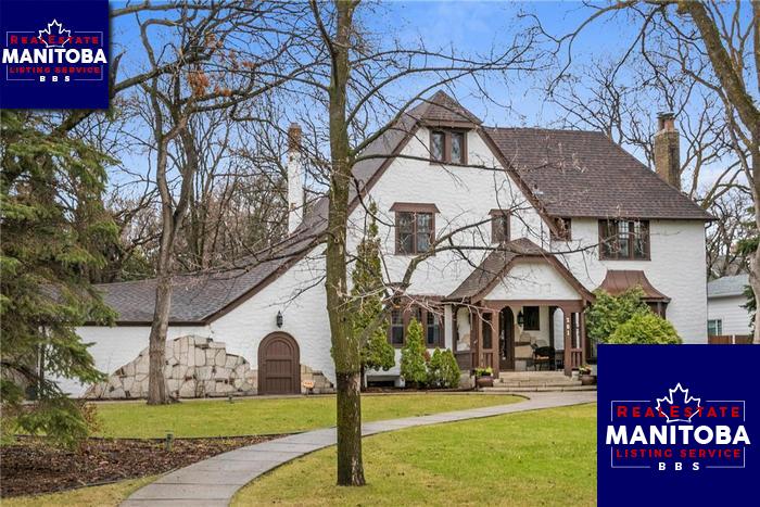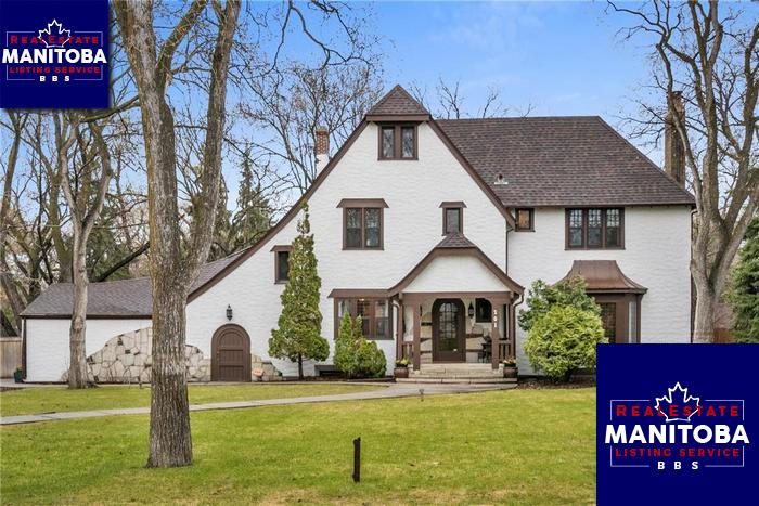 Landmark property in Old Tuxedo on fabulous 100x140 lot. Remarkable character home with beautiful details. Pegged oak floors, arched doorways and wrought iron accents. Spectacular living room with beamed ceiling. Stunning family room with 16 ft ceilings and clerestory windows, flooding the room with natural light. French garden doors open to a spectacular back yard. There is both a formal dining room off the island kitchen and another dining area overlooking the family room. 3 fireplaces. 3 bedrooms and 2 baths up. Finished basement, cozy rec rm with bar, office and full bath. Newer industrial boiler. 3 separate in-wall air conditioners. Main roof shingles done in 2007, Family room roof shingles 2005. Spray foam insulation and venting in the attic. Oversized attached double garage. Another garage can be located at laneway. Unsurpassed location and grounds nestled in the gorgeous tree-lined streets of the area. Walking distance to Assiniboine Park and local amenities. A rare home and property.