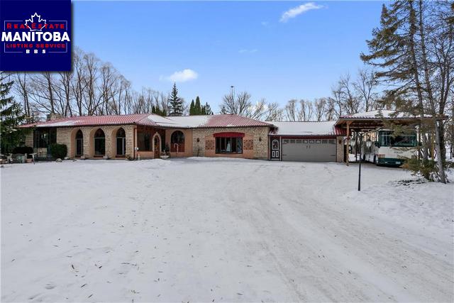 This unique character home is situated on 5.06 acres, Page wire fenced ideal for horses w/landscaped yard and mins to Birds Hill. This home features 3063 sf, 4 bdrms, 2 baths. Lg family room w/bright windows, heated tile floor and 3 sided gas fireplace, step up to the formal living room w/a stone wood burning fireplace, lg dining room, kitchen features tile floors and tiled backsplash, cherry cabinets w/glass panels and pantry w/etched glass door, newer SS appl and access to a screened 10x20 deck. Primary bedroom features a gas fireplace, 3pc ensuite and access to the screened deck. A lg 1, 000sf gym w/equipment. A double attached garage and carport for a motorhome. Some of the fine features of this home incl, new screened deck, barn w/2 box stalls, tack room and a water hydrant. In the front yard under the massive spruce trees are 2 feature ponds and waterfall, lg exterior arched brick fireplace off lower deck at rear, gated driveway, new tile roof, boiler heat and MORE! Lot can be subdivided, purchaser do own due diligence.